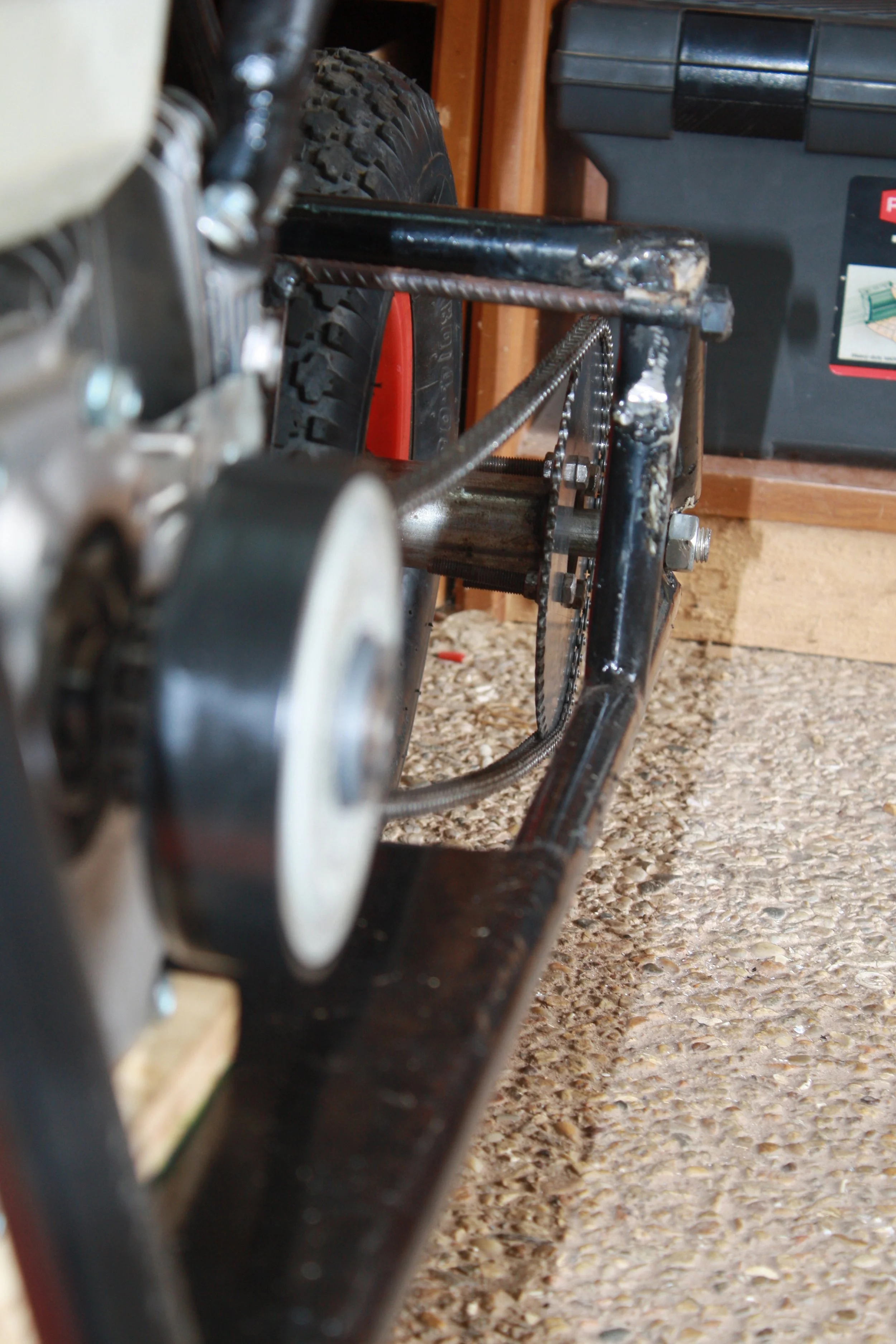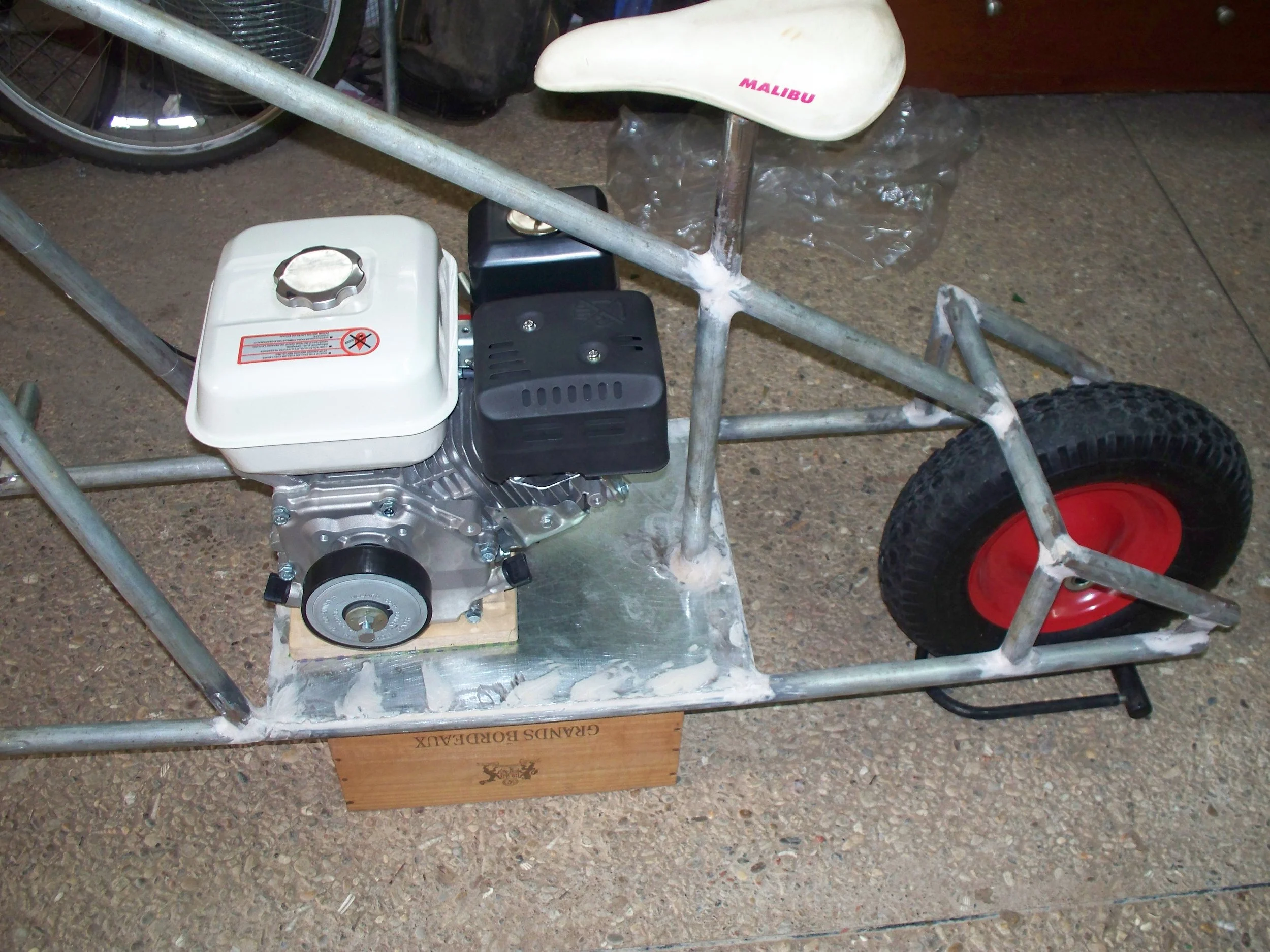 The powertrain components I was fortunate to have someone bring me from the U.S.: a centrifugal clutch, a rear sprocket, and a chain to connect the two (see gallery for details). Everything else was sweat and time. Chatting with local craftsmen to find parts and spending hours in traffic just to get to the appropriate markets, learning to weld from local welders, watching YouTube videos to learn how others made similar motorcycles, and lots of testing and failing.